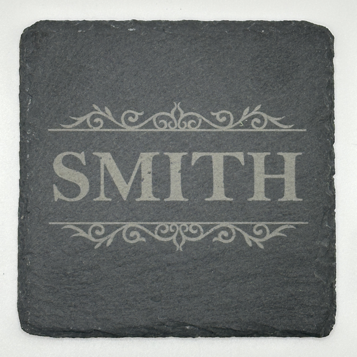 Set of 4 slate coasters with clients name. Makes a great closing gift.